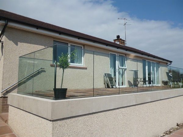 Using a unique dry fix hidden aluminium ground channel fixing the client was provided with a fully glazed veranda area giving spectacular views of the surrounding countryside due to the very minimal fixings used in the installation of the glazing screens. Glass panels of clear 12mm thick were used throughout the scheme as were stainless steel fixings. With no vertical panel posts the glazing gave an uninterrupted view of the surroundings. For more details of our glazed screen please contact our sales department who will be happy to provide best practice options and budget costs for any scheme you require.