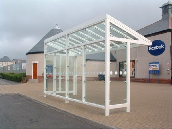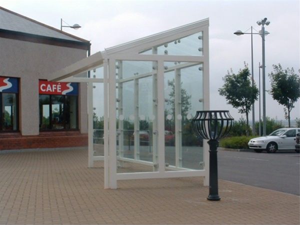 Urban Design & Developments Ltd offer a complete bespoke design service for all types of passenger waiting shelters of all shapes and sizes – fully enclosed, cantilever style, ends open or closed, integral seating etc. We can provide a single shelter to a complete bus station development. This shelter has a combination of glazing materials, with toughened safety glass panels fixed to 3 vertical sides with Stainless Steel fixings, and roof panels fixed in a patent glazing system. The shelter is finished with an integral drainage system. All steel work is decorated in a heavy duty exterior grade metallic enamel paint system to any standard BS or RAL colour.