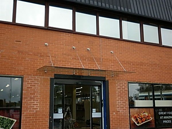 Urban Design provided an food outlet with a cost effective simple frameless style glass canopy unit. Fixings for the canopy were entirely of stainless steel with toughened glass safety panels. For details of our full range of frameless style economy canopies please contact our sales department.