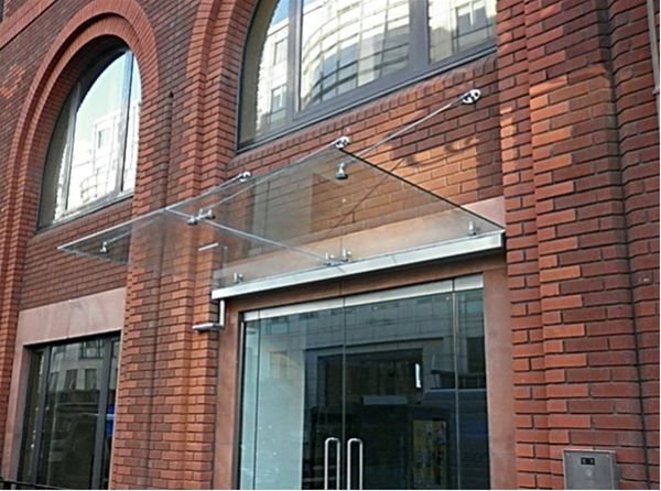 A simple effective and economical frameless style glazed canopy unit to a prestige office development in central London. Using our standard components and stainless steel rear gutter cahnnel we were able to install the canopy within a very tight time scale. For the full range and extent of frameless canopies we offer please contact our technical sales department.