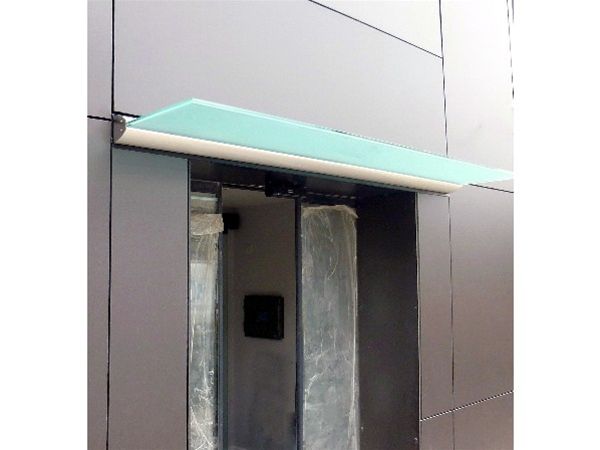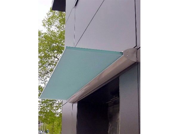A modern frameless glass canopy using our unique rear support system stainless steel channel, this method alleviates the need for any visible support. Rear channels are aluminium and a stainless steel composition. A variety of glass panels can be used. The examples here are a laminate satinised glass.