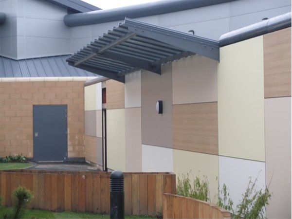 As part of the main wall structure a seating area was covered with a toughened glass glazed canopy unit. The main support arms were fixed to the internal wall steel support frame and the glass was held in place using an aluminium polyester powder coated glazing bar system. All steelwork was decorated in a heavy duty high gloss external enamel paint system.