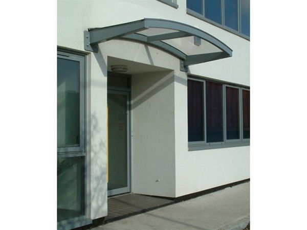 A fully decorated mild steel support framework fixed back to internal steelwork provided the basic design for numerous canopy units on the above project. All steelwork was fully decorated using our standard heavy duty exterior grade enamel paint system, which is available in any standard BS or RAL colour. Roof covering was provided by the use of clear solid UV protected polycarbonate sheets.