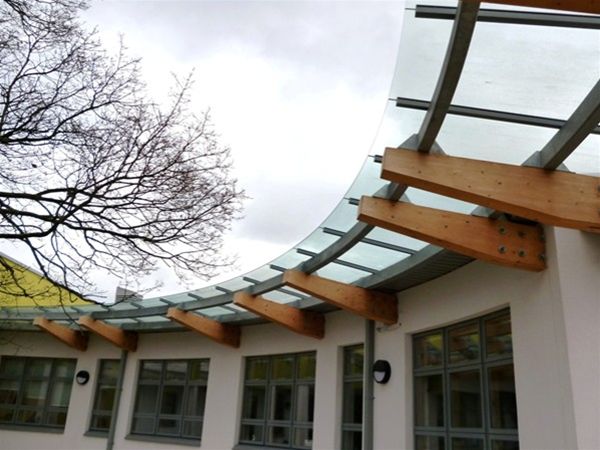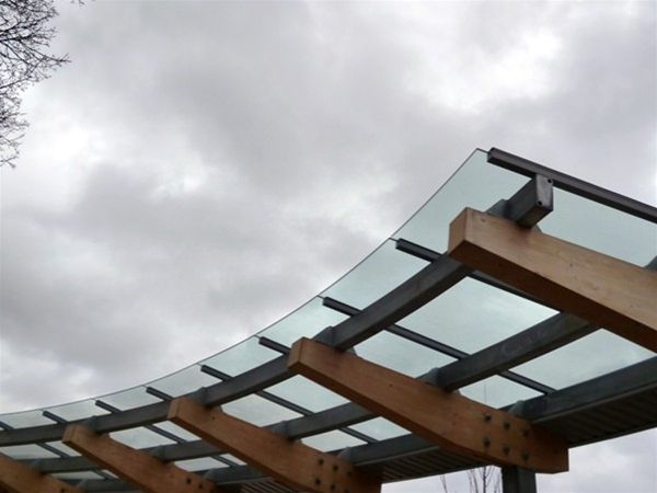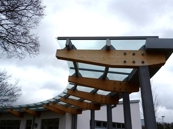 Asked to provide glazing to a laminated timber walkway Urban Design adapted a range of stainless steel planar type fixings to allow them to be located on the timber beam arms to fix panels of clear toughened safety glass above the timber walkway frame. The fixings were drilled into the timber beams and located in supporting position for the glass panels.