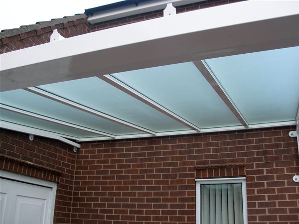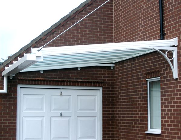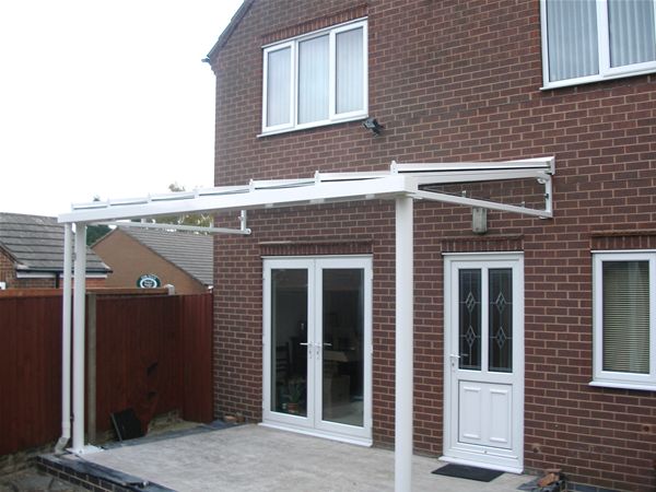 Front and rear canopy units to a private housing development. With mild steel high gloss finish decorated frameworks, complete with satinised toughened safety glass panels in a aluminium polyester powder coated patent glazing bar system and including a integral gutter system.