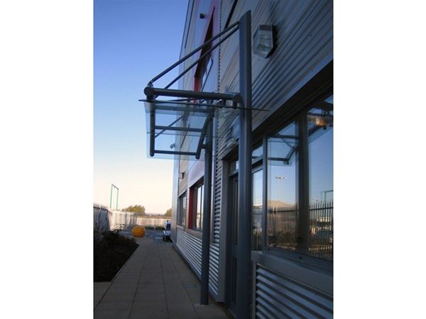 Comprising of a fully decorated mild steel framework complete with two CHS support columns taken down to concrete foundations below ground level. Tie rods fixed to the front edge of the canopy and to the main support columns at a higher level to give extra support.