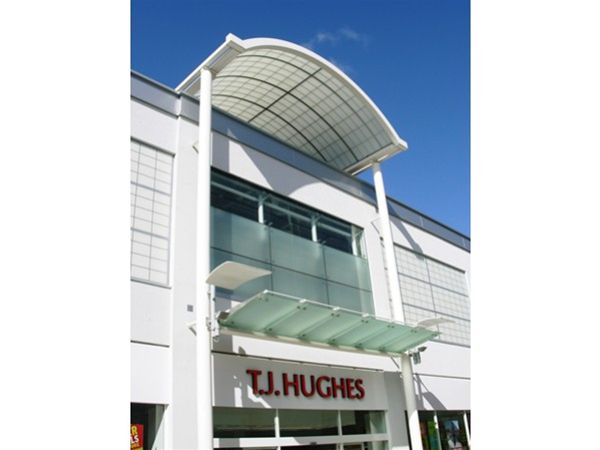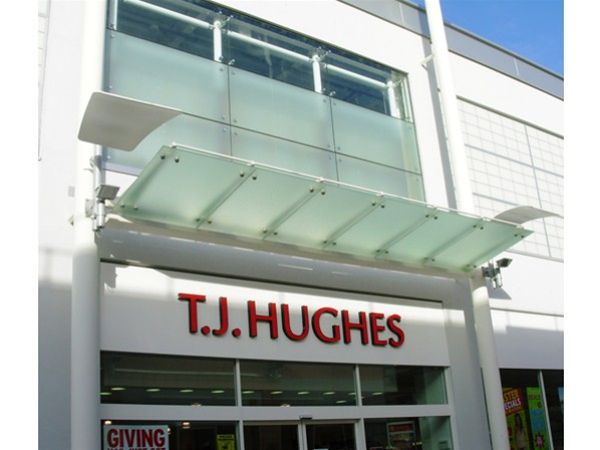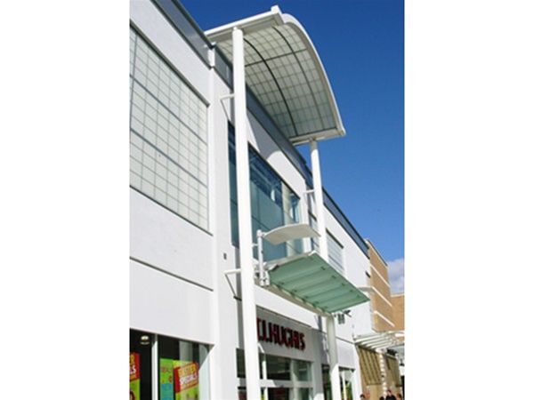 Comprising of a fully decorated mild steel framework complete with two large rear CHS support columns taken down to concrete foundations below ground level. All steelwork was fully decorated using our standard heavy duty exterior grade enamel paint system, which is available in any standard BS or RAL colour. Roof covering was provided by the use of satinised toughened safety glass panels fixed in a stainless steel planar type system. Panels were under slung to the support framework. A integral rear gutter channel completed the design.
